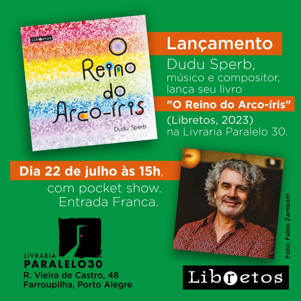 O lançamento do livro "O Reino do Arco-íris" será no sábado, dia 22 de julho, às 15h, na Livraria Paralelo 30 (Rua Vieira de Castro, 48), com um pocket show do artista.
